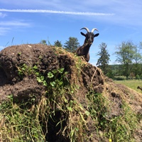 Our goat's at play...